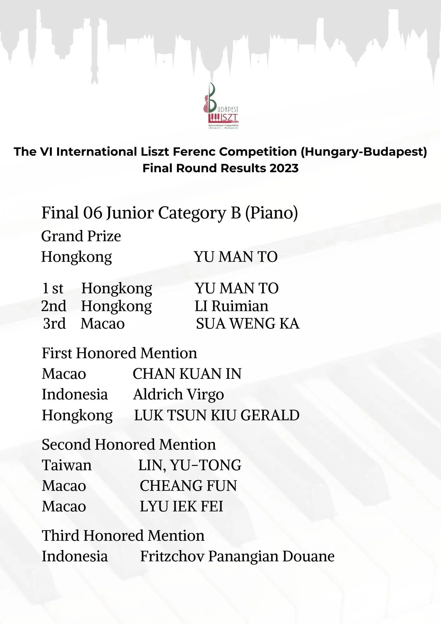 2025 Purcell 國際青少年鋼琴比賽 澳門賽區